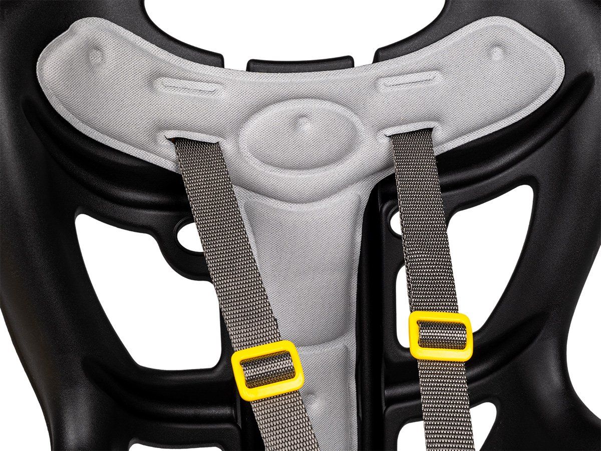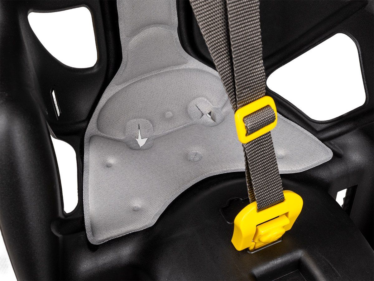Naša najľahšia zadná cyklosedačka s veľkými ventilačnými otvormi na zadnej a bočnej strane. Vhodná do mierneho podnebia, vybavená mäkkým vankúšikom, ktorý je ľahko odnímateľný a prateľný, mimoriadne pohodlnou bezpečnostnou prackou, ktorú možno zapnúť aj odopnúť jednou rukou, a nepretržitým nastavením výšky opierok nôh v 13 polohách. Vysoké bočnice lepšie fixujú dieťa a široké ochranné kryty zabraňujú kontaktu nôh so špicami kolies.